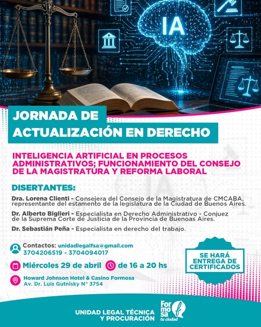 Una propuesta para seguir formándose y reflexionar sobre temas actuales como la inteligencia artificial en procesos administrativos, el funcionamiento del Consejo de la Magistratura y la reforma laboral.